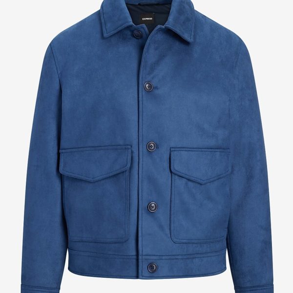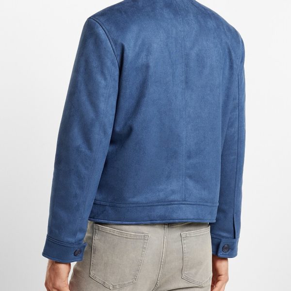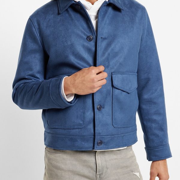 - A sleek faux suede bomber jacket with a modern button front. Perfect for layering over your tees with jeans or chinos for easy styling.