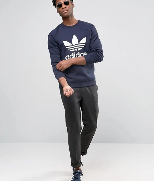 Adidas Originals Trefoil Crew Fleece Sweatshirt -Navy