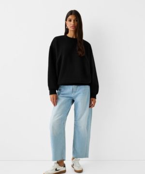 BERSHKA Oversize Sweatshirt With Side Pockets – BLACK