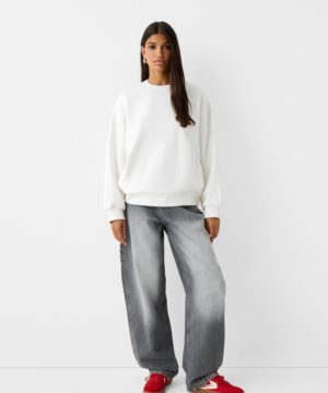 BERSHKA Oversize Sweatshirt With Side Pockets – WHITE