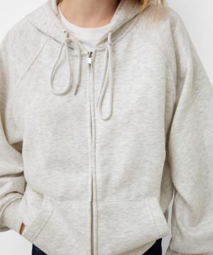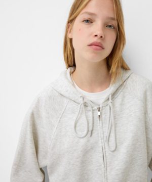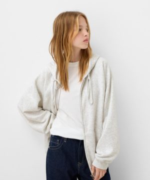 BERSHKA OVERSIZED FLEECE FULL ZIP HOODIE – GREY