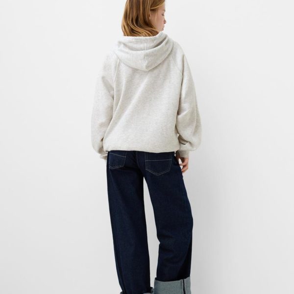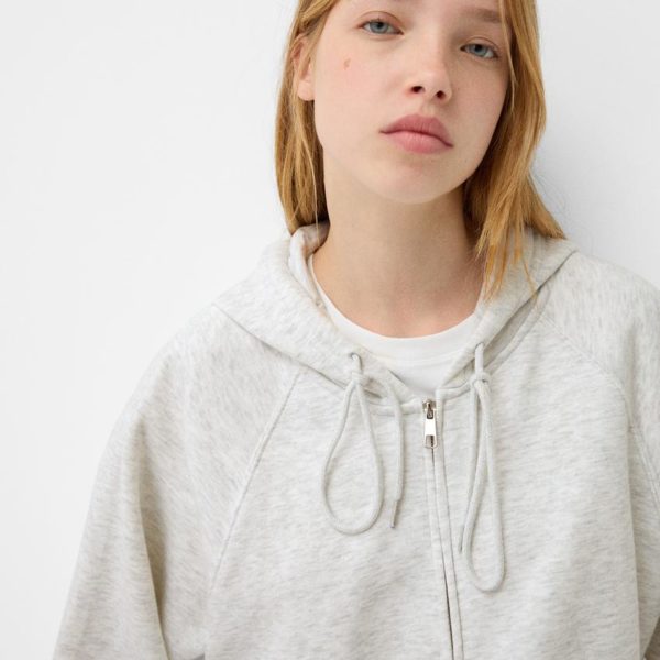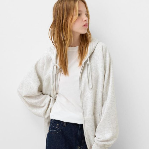 BERSHKA OVERSIZED FLEECE FULL ZIP HOODIE – GREY