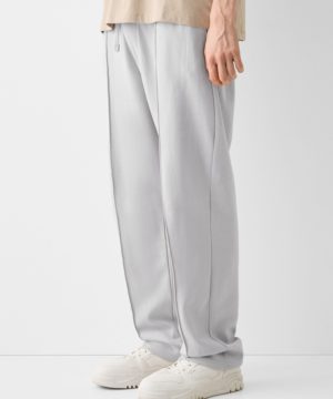 Bershka Wide-Leg Interlock Trousers – Grey