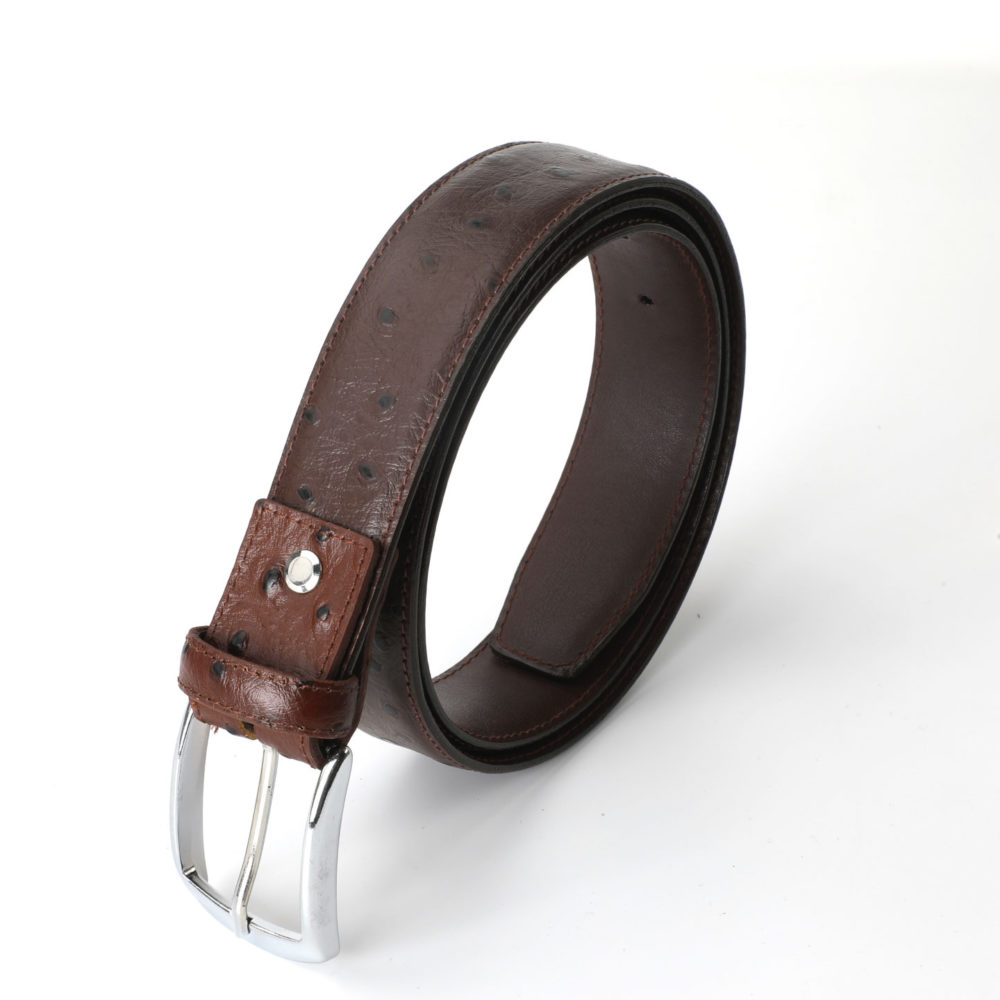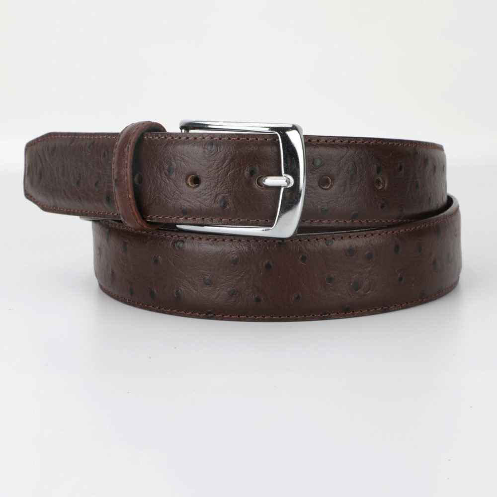 Brown Dress Belt In Full Grain Leather With Black Dots – 007 Brown