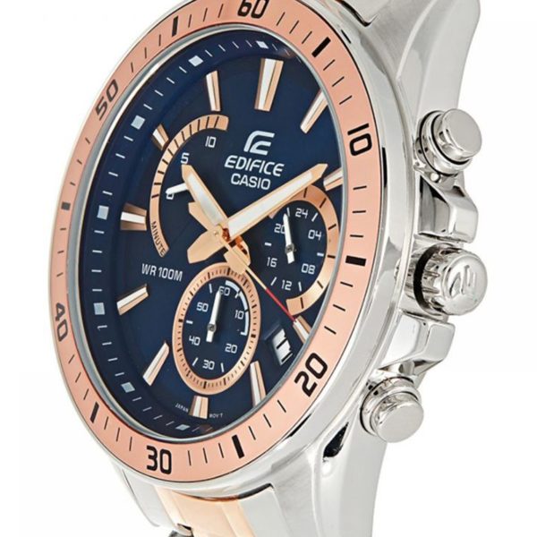 Casio Edifice Mens Steel Silver/Rosegold Case Blue Chronograph Dial Silver/Rosegold Steel Band Watch