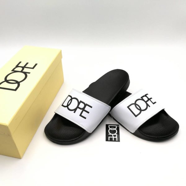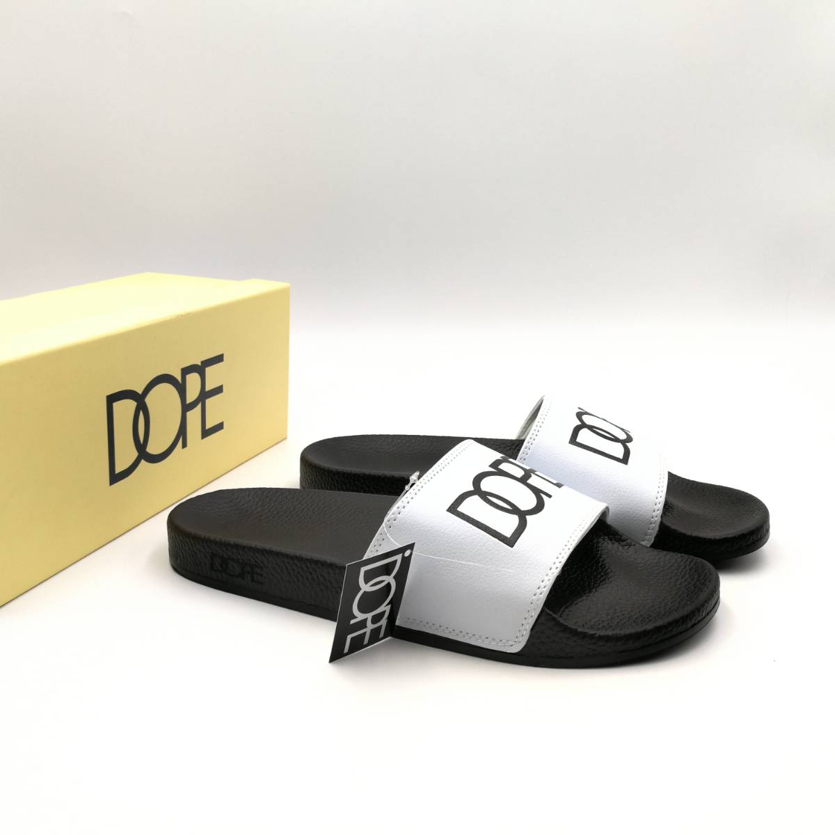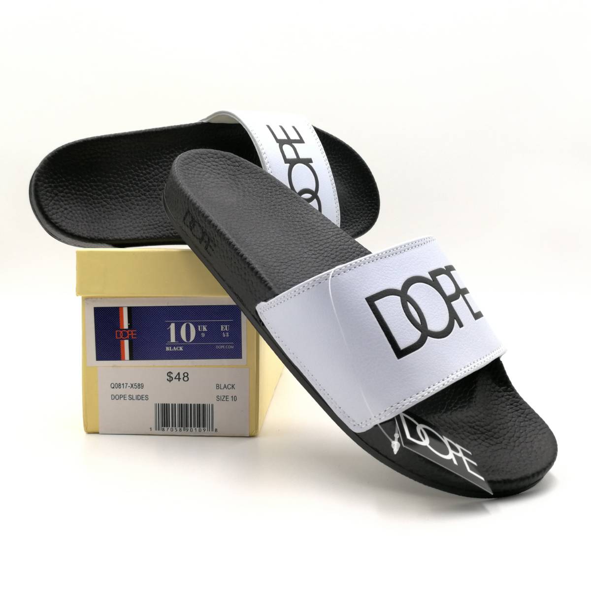Slide on a classic in laid-back style with the new DOPE Slide Sandal. Construction: Featuring a soft, synthetic microfiber upper with the DOPE linear logo, EVA cushioned footbed, and lightweight EVA outsole for comfort and traction.