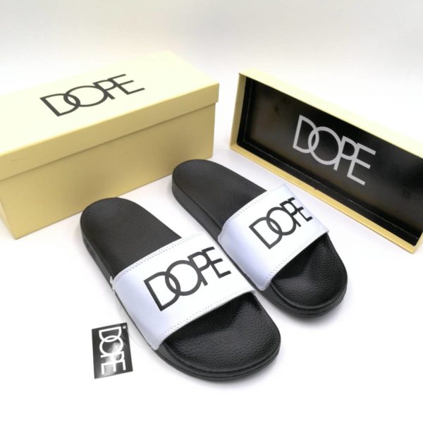Slide on a classic in laid-back style with the new DOPE Slide Sandal. Construction: Featuring a soft, synthetic microfiber upper with the DOPE linear logo, EVA cushioned footbed, and lightweight EVA outsole for comfort and traction.