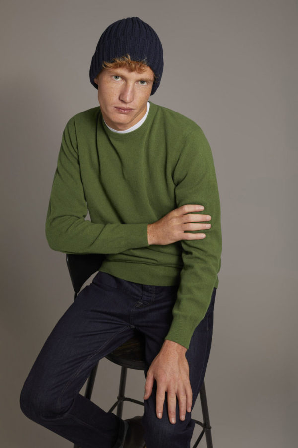 Doppelganger Roma Lambswool Round Neck Sweater – Grass Green