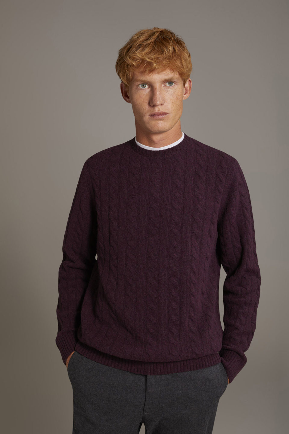 Doppelganger Roma Cable Knit Lambswool Sweater – Burgundy