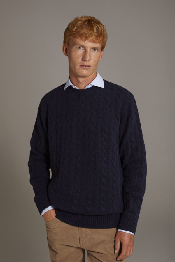 Be the first to review “Doppelganger Roma Cable Knit Lambswool Sweater – Navy” Cancel reply
