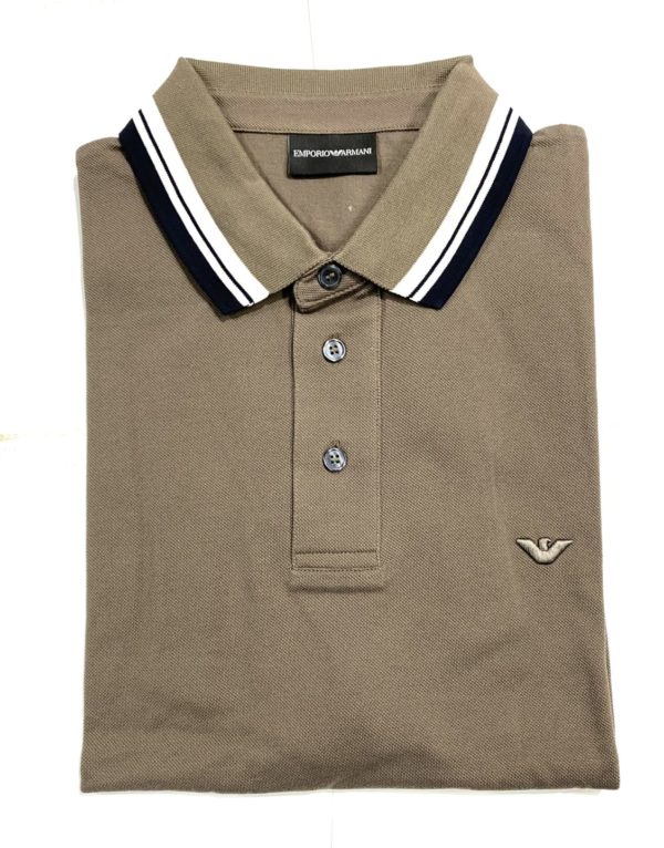 Emporio Armani Eagle Embroidery Logo Polo With Collar Stripes