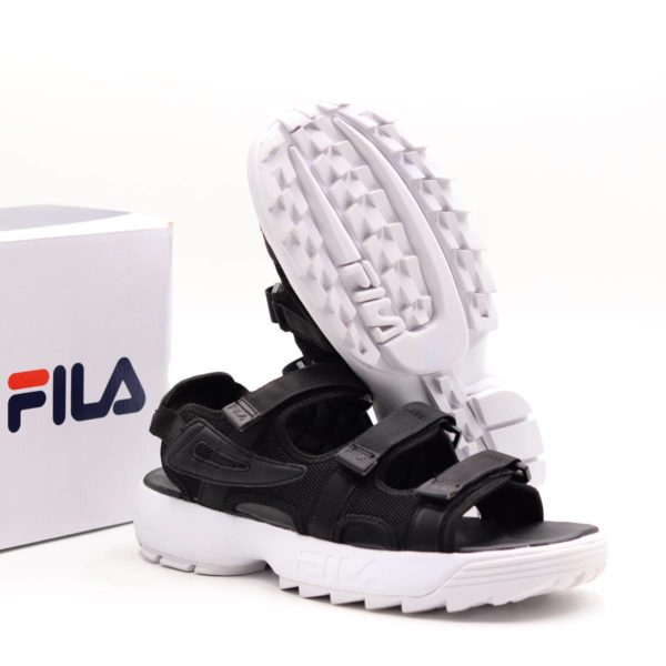 A summer-ready version of the label’s signature Disrupter sneakers. These sleek black Fila sandals combine Dad sneaker style with warm weather ease, for a pair so comfy and cool you’ll want to wear them all season long.