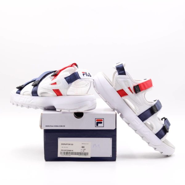 Equal amounts of style and function, FILA’s Disruptor Platform Sandal arrives just in time for the warm weather. The white, navy blue and red FILA Disruptor Sandals offer a supportive and lightweight contoured EVA foam footbed for all-day comfort while the 1.5″ platform outsole will come in handy at festivals and in big crowds. Completed with a serrated tread for grip and an authentic Disruptor style.