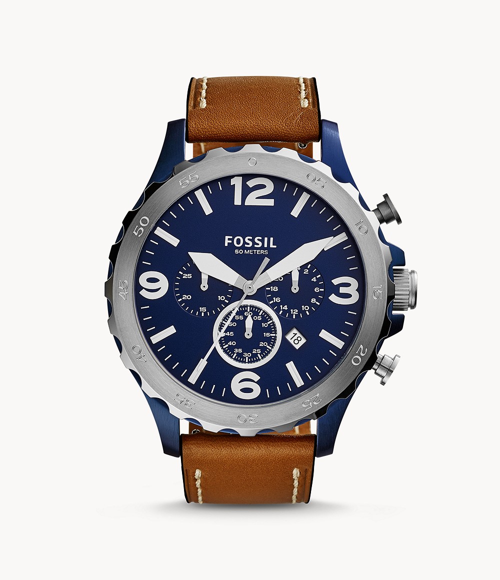 Fossil Nate Chronograph Brown Leather Watch JR1504
