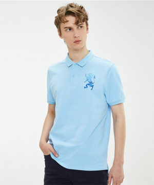 Giordano Men’s 3D Lion Multi-Color Embroidery Polo – Sky Blue