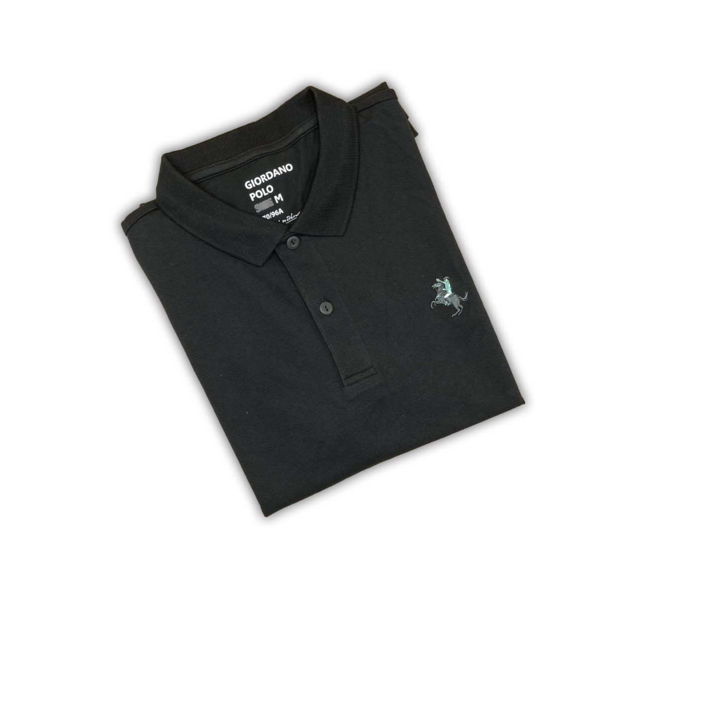 Giordano Men’s Small Rider Multi-Color Embroidery Polo – Black/Sea Green