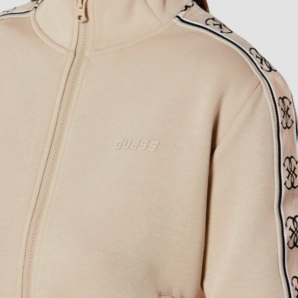 Guess Interlock Side Logo Tape Zip Up Track Top – Beige