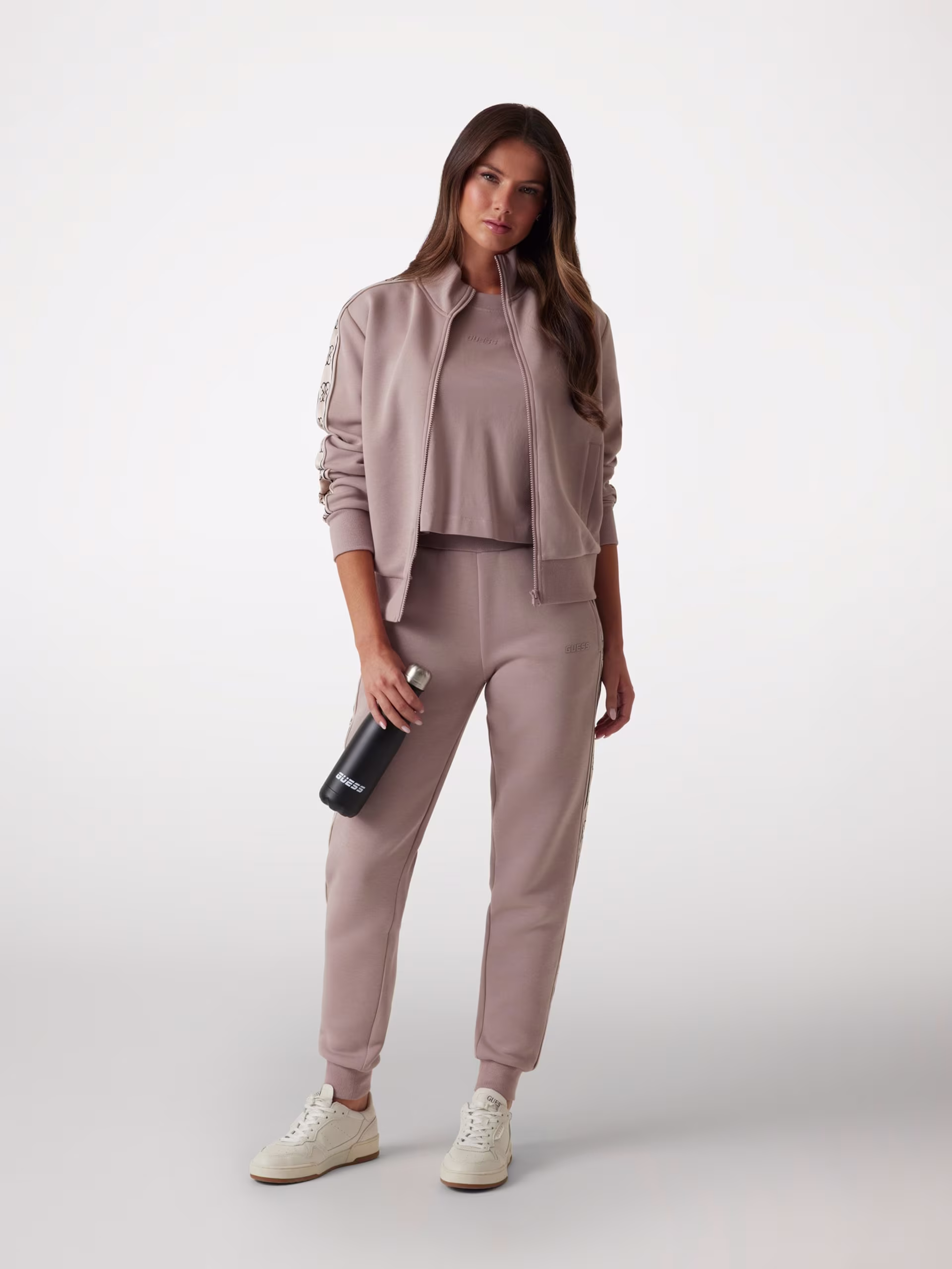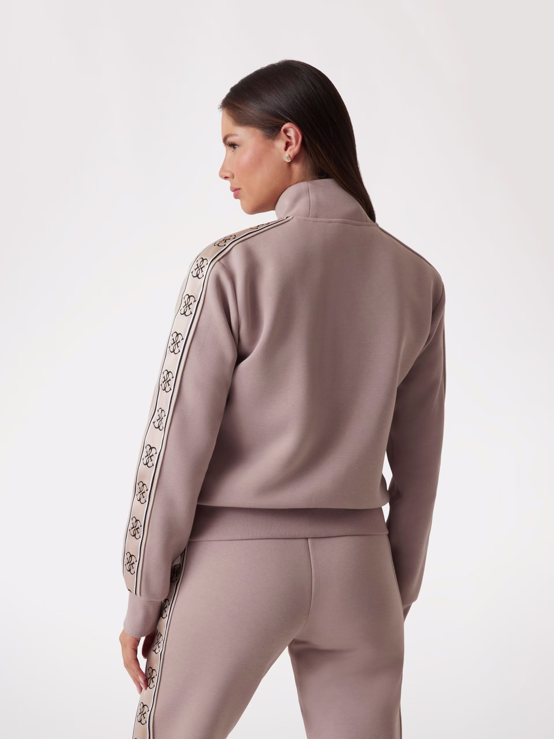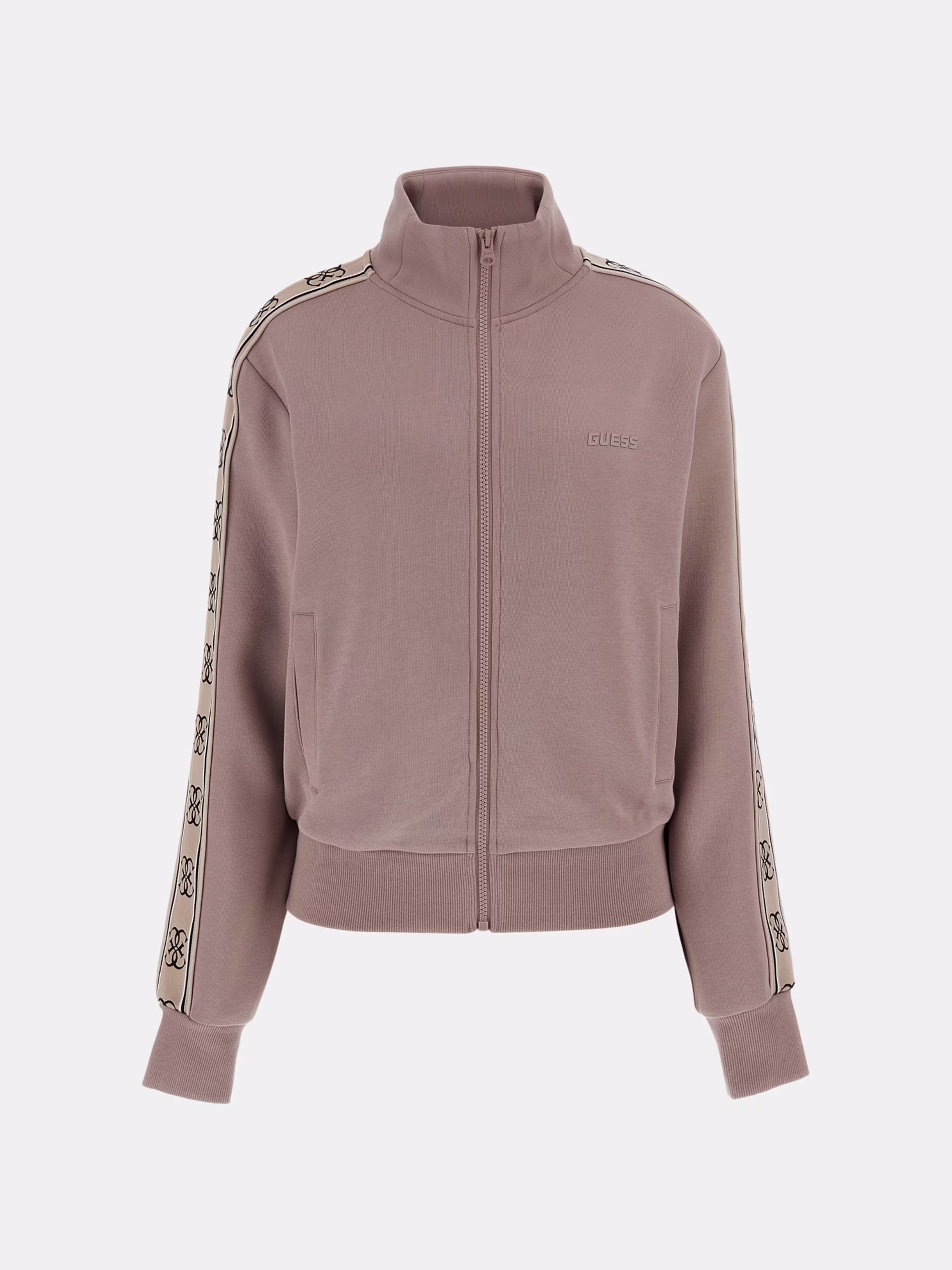 Guess Interlock Side Logo Tape Zip Up Track Top – Light Brown