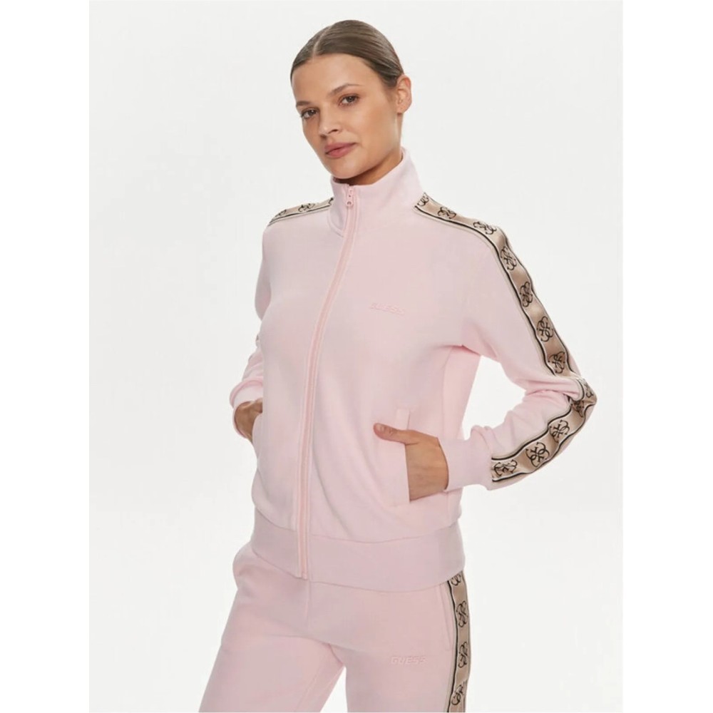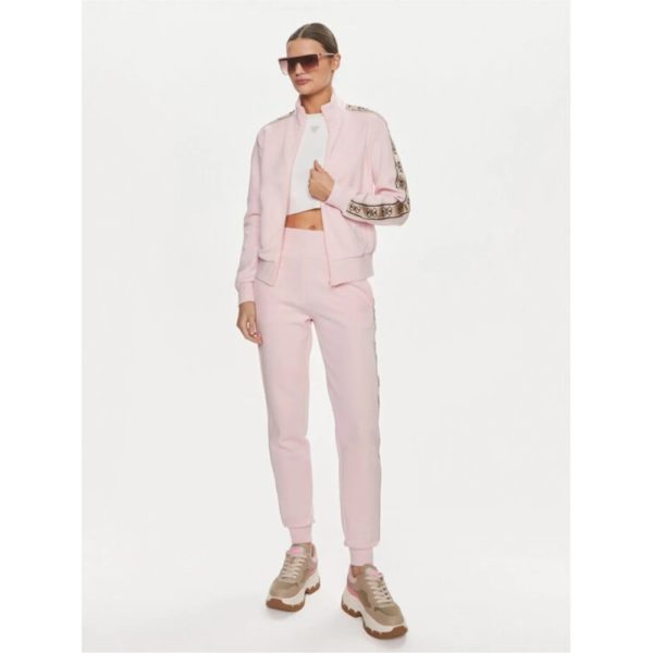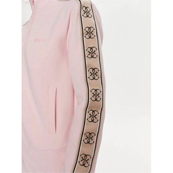 Guess Interlock Side Logo Tape Zip Up Track Top – Powder Pink