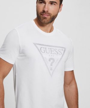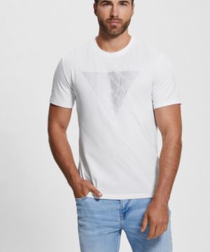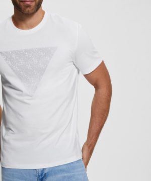 Guess Men’s SSCN Shiny Gel Triangle T-Shirt White