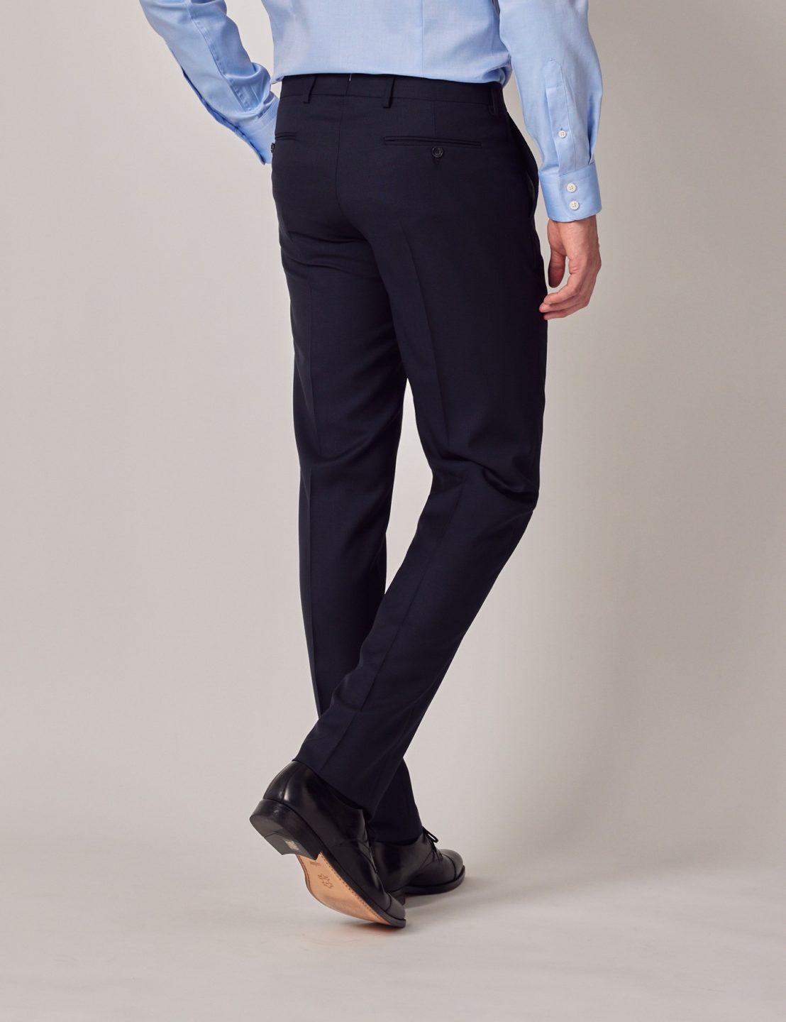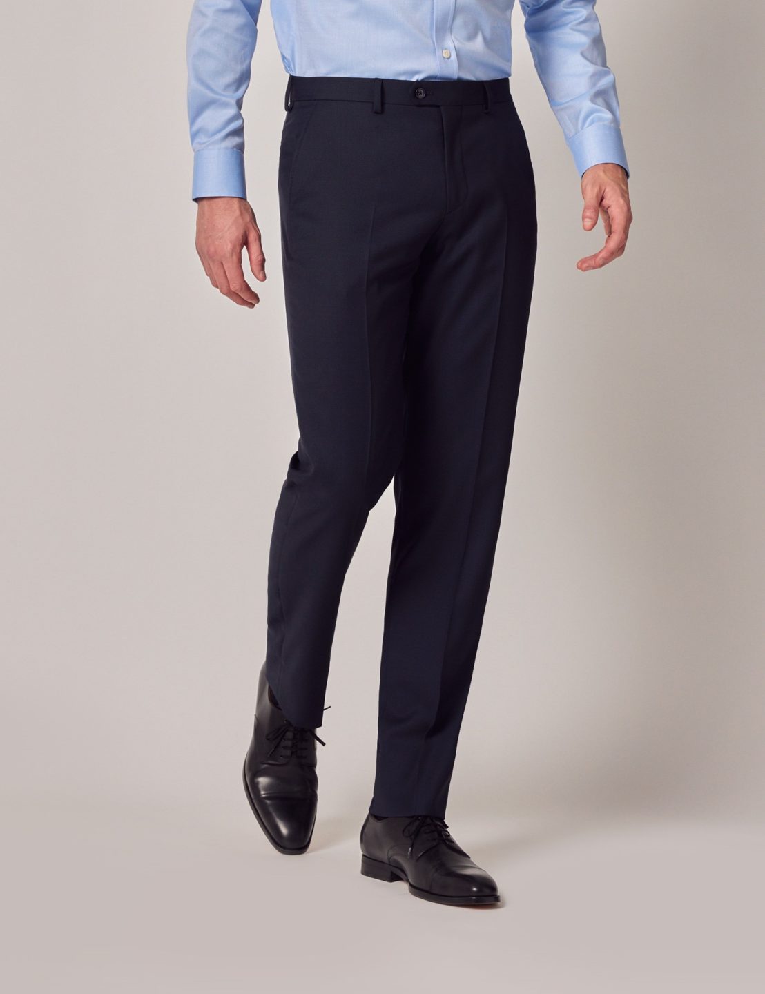 H&C Men’s Dark Blue Semi Plain Slim Fit Suit Trousers