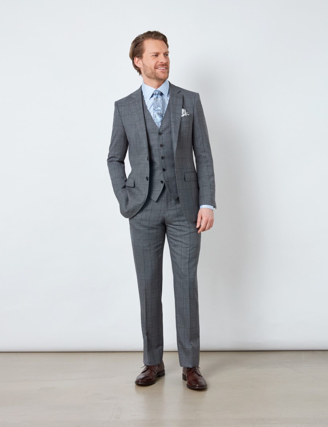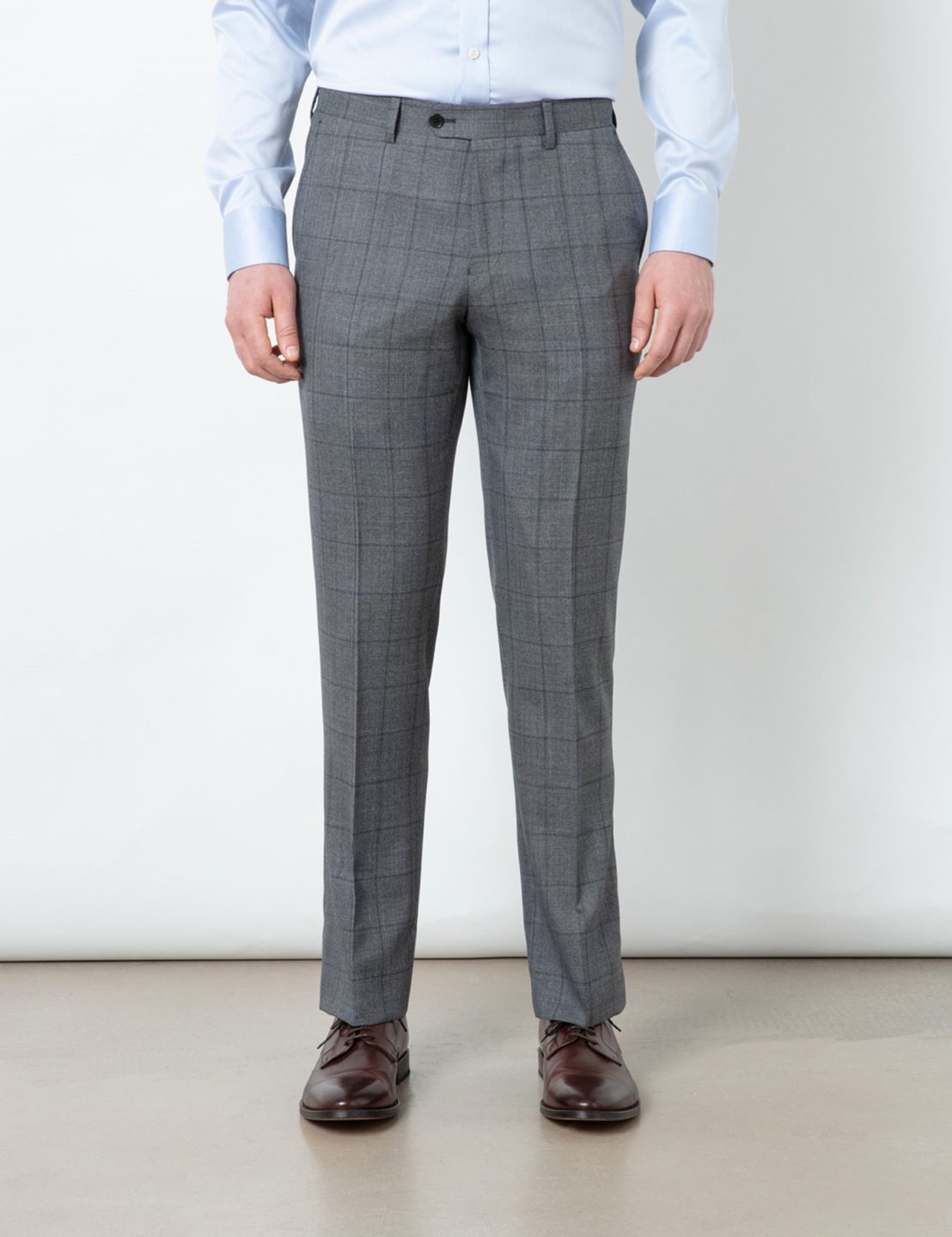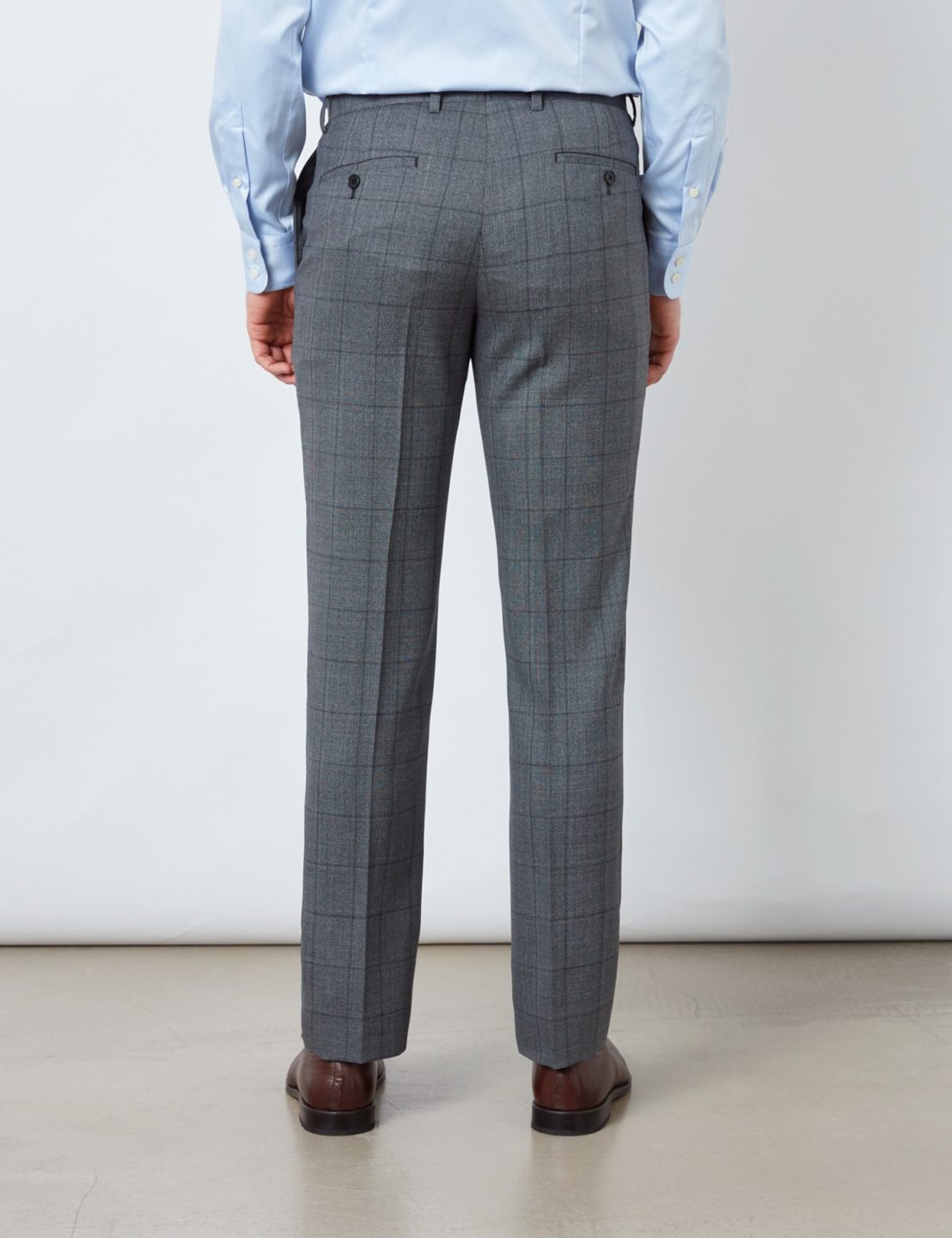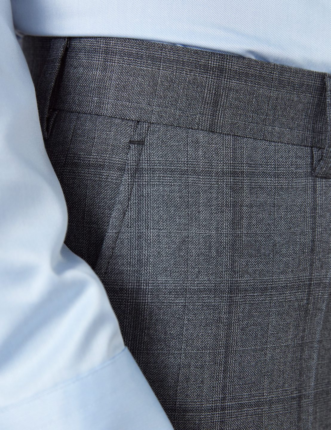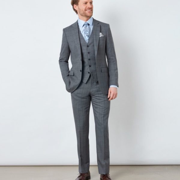 H&C Men’s Grey Tonal Check Slim Fit Suit Trousers