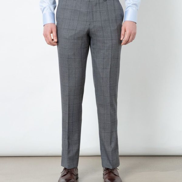 H&C Men’s Grey Tonal Check Slim Fit Suit Trousers