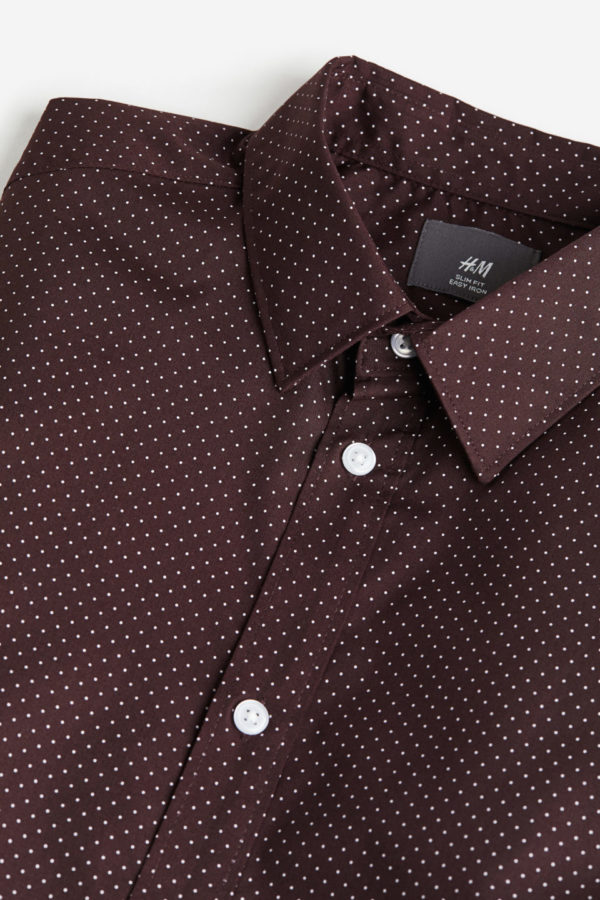 H&M Slim Fit Easy-Iron Button Down Shirt – Maroon/Spotted