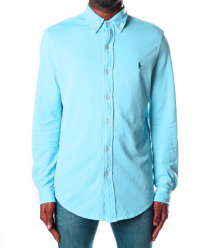 Slim-fit shirt in woven fabric with an easy-iron finish. Turn-down collar, classic button placket, and darts and a yoke at back. Long sleeves with adjustable buttoning at cuffs and a sleeve placket with link button. Gently rounded hem.