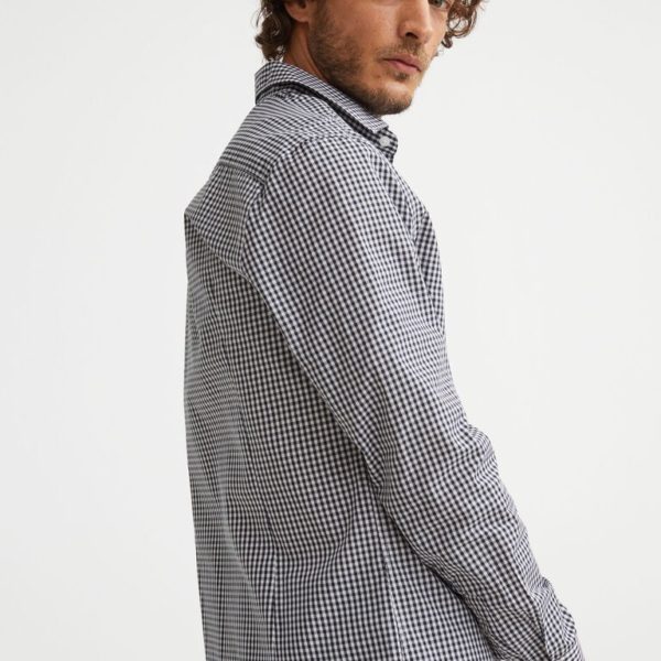 H&M Slim Fit Easy-Iron Woven Shirt – Checkered Black