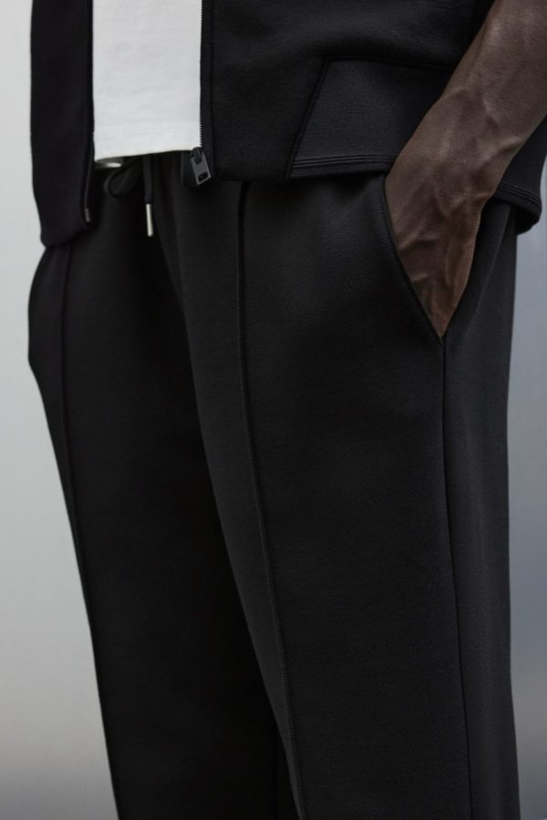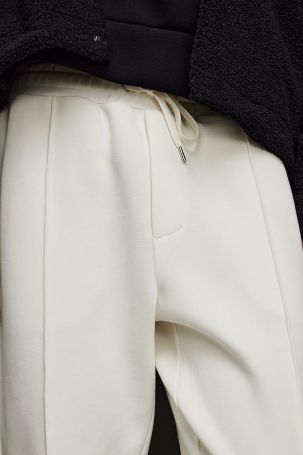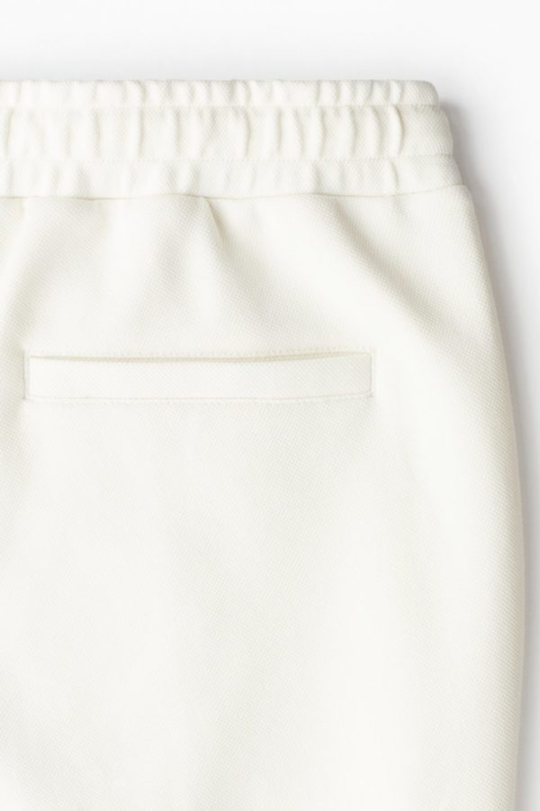 Tailored joggers in woven fabric with covered elastication and a drawstring at the waist, a fake fly, side pockets and a welt back pocket. Sewn-in creases down the front. Slim fit that hugs the contours of your body, creating a fitted silhouette.