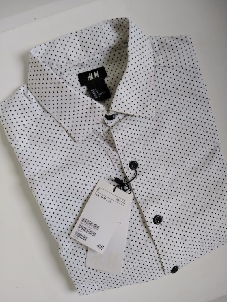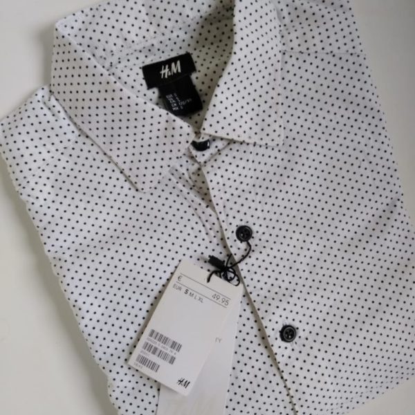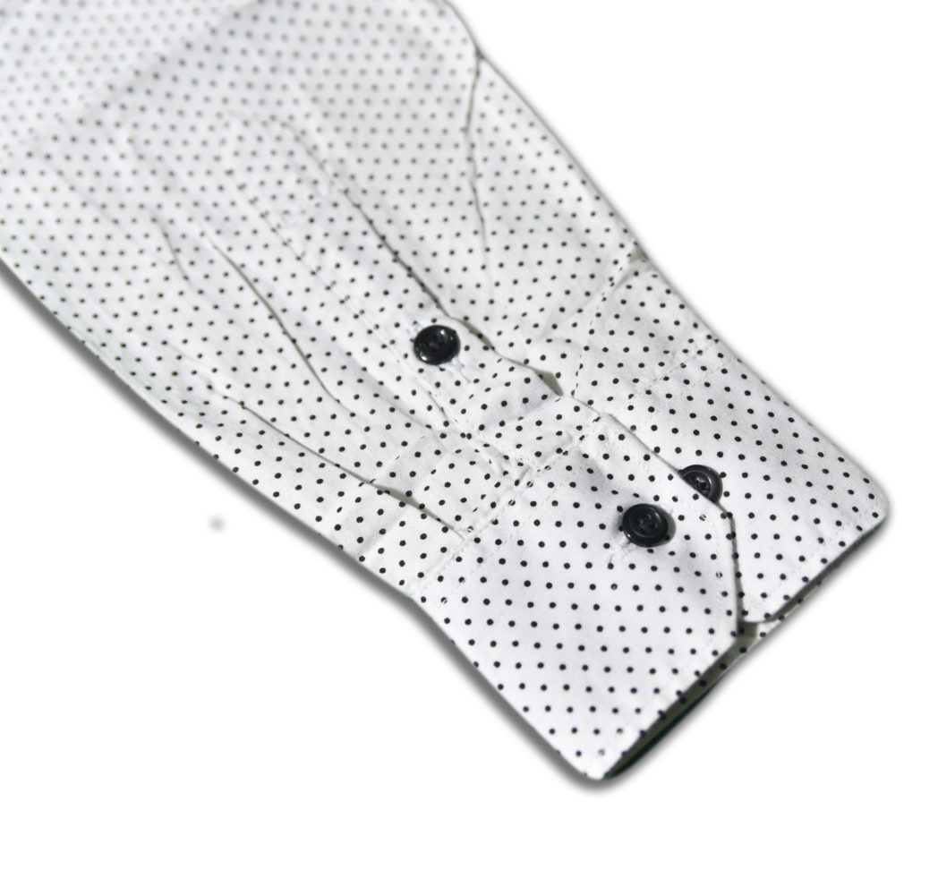 Long-sleeved shirt in cotton-blend fabric with an easy-iron finish. Turn-down collar and classic button-placket front. Narrow cuffs with adjustable buttoning, darts at back, and rounded hem. Slim fit with narrow shoulders and tapered waist for a tailored silhouette.