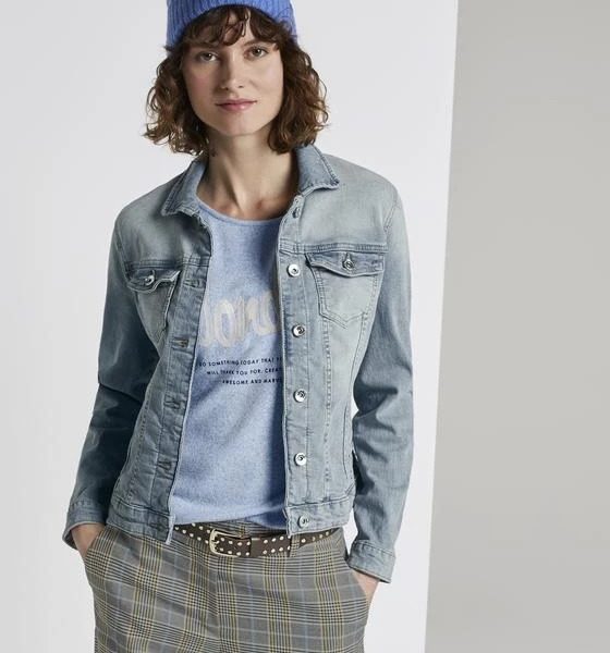 - Long-sleeved Denim Jacket with front pockets.