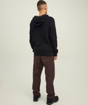JACK & JONES CLASSIC KNITTED HOODIE SWEATER – BLACK