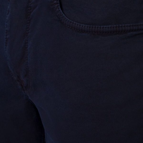 Men’s dark blue pants are a real classic of smart casual style. Fashionable pants with five pockets from the LANCERTO Comfort plus line have been sewn from high quality twill cotton that is durable. Spandex in combination with a knitted structure ensures perfect fit and durability. The pants have five pockets. Two recessed on the back, including one with a characteristic pin with the logo and the LANCERTO monogram and two front ones, while the right pocket has an additional pocket with the embroidery of the LANCERTO monogram. The Bruce model has a metal button fastening, additional pocket strengthening with bolts and metal rivets. The pants come from the LANCERTO Comfort Plus line, are soft to the touch, resistant to creasing and thanks to the addition of synthetic yarn give a great fit and freedom of movement.