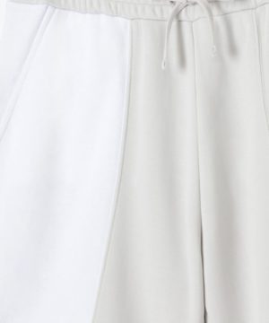 Bermuda shorts with an elasticated drawstring waistband. They have two side pockets and one at the back. Made of a pleasant and comfortable colour block fabric.