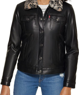Levi’s Women’s Leather Sherpa Lined Trucker Jacket