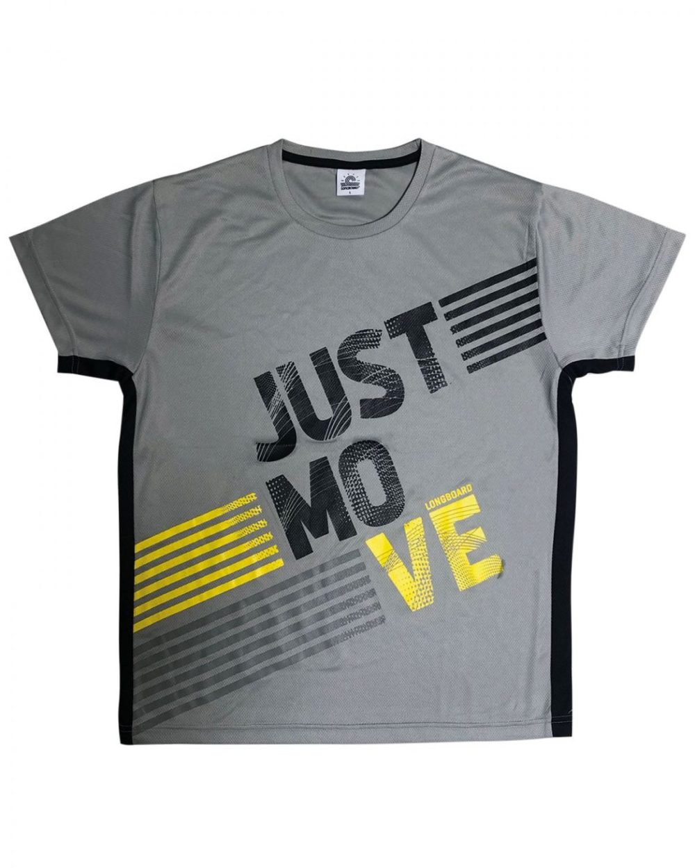 - Short-sleeved round-neck t-shirt with Just Move writing on the chest and black piping on the sides.