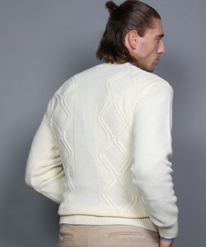 Be the first to review “Luigi Fusaro Ribbed Diamond Pattern Crew Neck – White” Cancel reply