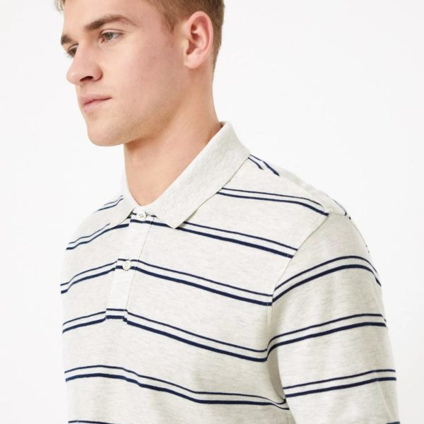 - The contrasting striped design really sets off the look of this classic polo shirt.