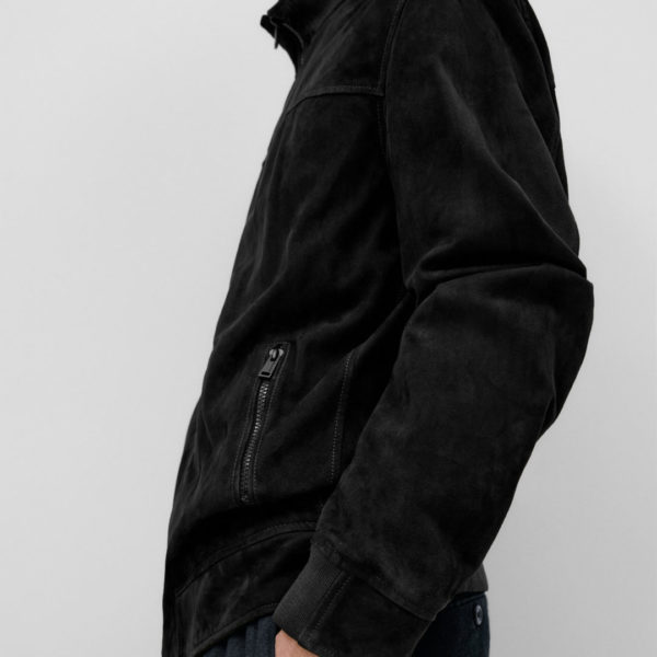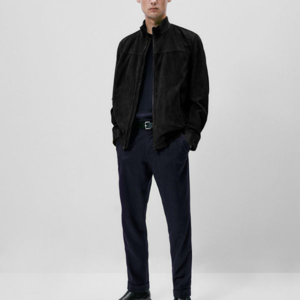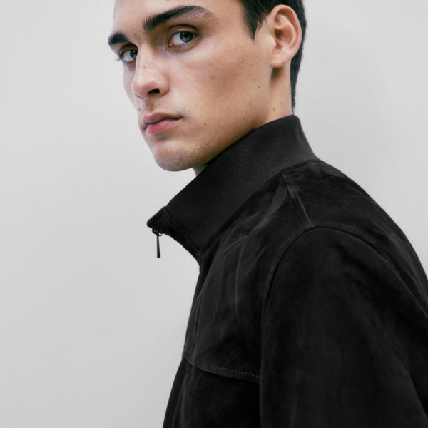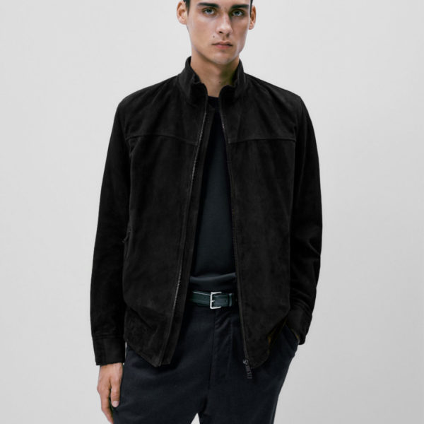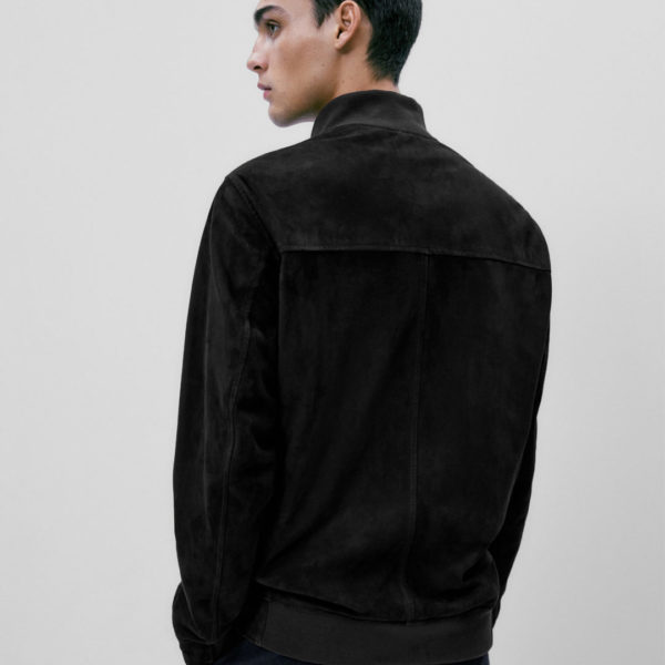 Massimo Dutti Stand Collar Suede Jacket – Black
