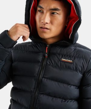 A padded jacket with horizontal quilting, featuring welt pockets and Nautica Competition logo to the front.