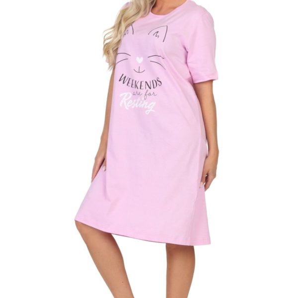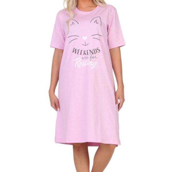 Normann ladies Big Cat Print Night Long Shirt Pink