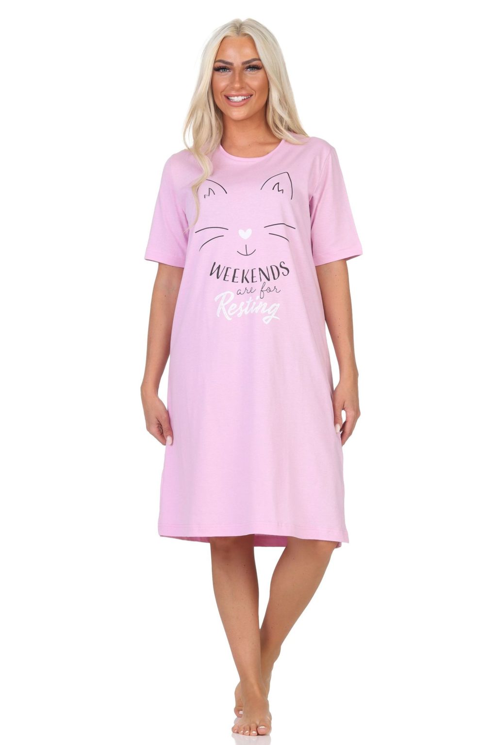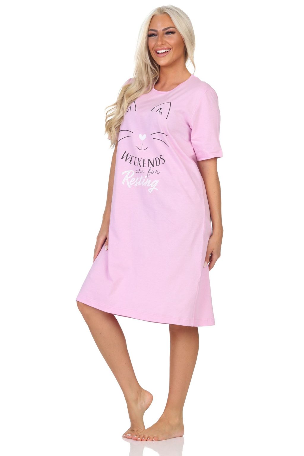 Normann ladies Big Cat Print Night Long Shirt Pink