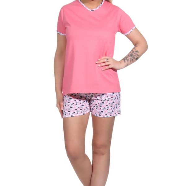 Women’s shorty pajama set with a floral motif and minimal print
