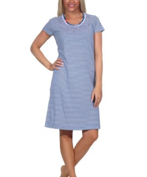 Normann women’s short-sleeved striped nightdress with lace trim – also in plus sizes