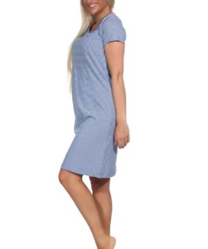 It’s always the details that count, and this short-sleeved women’s nightdress has lots of beautiful ones: the sleepshirt has a yarn-dyed striped look and a contrasting neckline, which is also decorated with fine lace, which underlines the quality of this nightdress.
