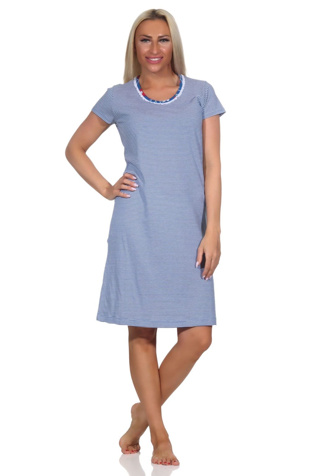 It’s always the details that count, and this short-sleeved women’s nightdress has lots of beautiful ones: the sleepshirt has a yarn-dyed striped look and a contrasting neckline, which is also decorated with fine lace, which underlines the quality of this nightdress.