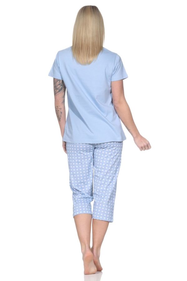 - Pastel colors and short polka-dotted pants are in fashion, and with this women’s short-sleeved pajama set, you’ll always be well-dressed. Pajama capri pants are always a great alternative to pajamas