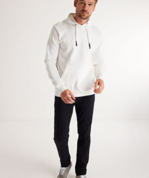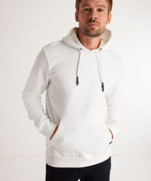 Update your collection of essentials with this classic mens hoody. In soft ecru with a large front pocket and a drawstring hood, its ideal for your everyday wardrobe.
